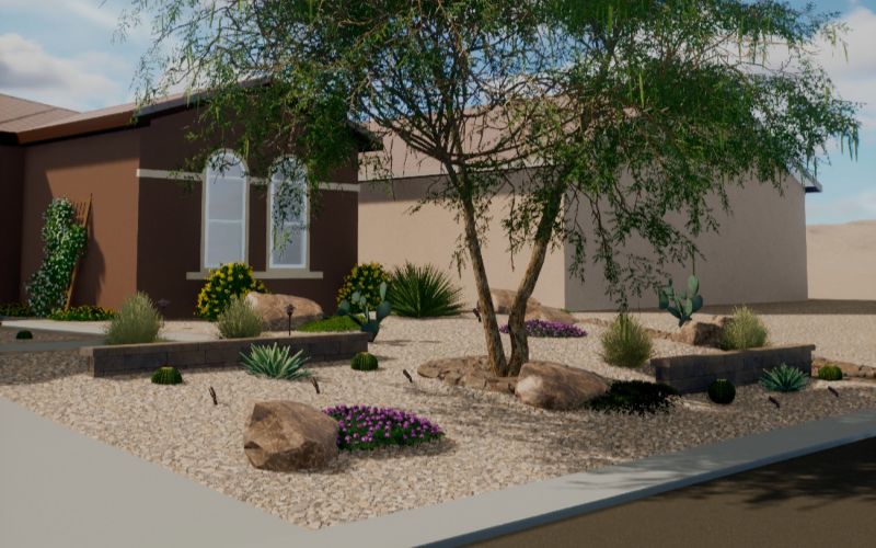 Every homeowner has a different vision for their outdoor space, and our 3D design services make it easy to bring those ideas to life. Imagine a sleek, desert-modern front yard, a lush backyard retreat for relaxation and entertaining, or a low-maintenance landscape with durable pavers and artificial grass. Our team creates realistic renderings that showcase your options.